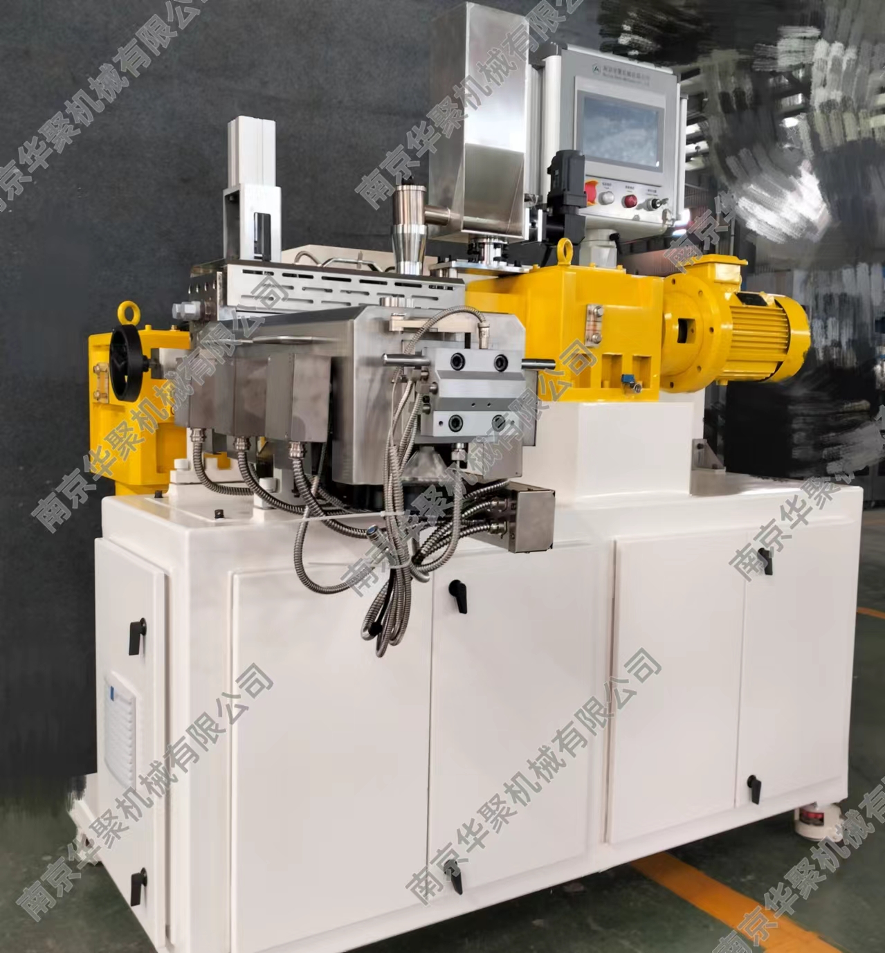 南京華聚機(jī)械有限公司致力于同向平行雙螺桿擠出機(jī)及連續(xù)密煉機(jī)的研發(fā)制造,在塑料改性、擠出發(fā)泡、高填充技術(shù)等相關(guān)領(lǐng)域擁有核心的技術(shù)和經(jīng)驗(yàn)。關(guān)鍵零部件如:連續(xù)密煉轉(zhuǎn)子及腔體、高扭矩齒輪箱、側(cè)向加料裝置、特殊工藝加工段等等均為自主研發(fā)。作為給客戶提供全套專業(yè)解決方案的“智造”商,華聚能為客戶提供以連續(xù)密煉和雙螺桿擠出應(yīng)用為核心,結(jié)合高效能單螺桿各類擠出生產(chǎn)線的智能型成套裝備以及相關(guān)的工藝與工程領(lǐng)域技術(shù)開發(fā)、產(chǎn)品制造直至交鑰匙工程;